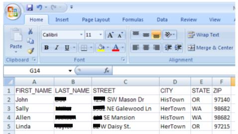 The list includes the New Mover’s First and Last Name and their physical mailing address so you can send mail to them.